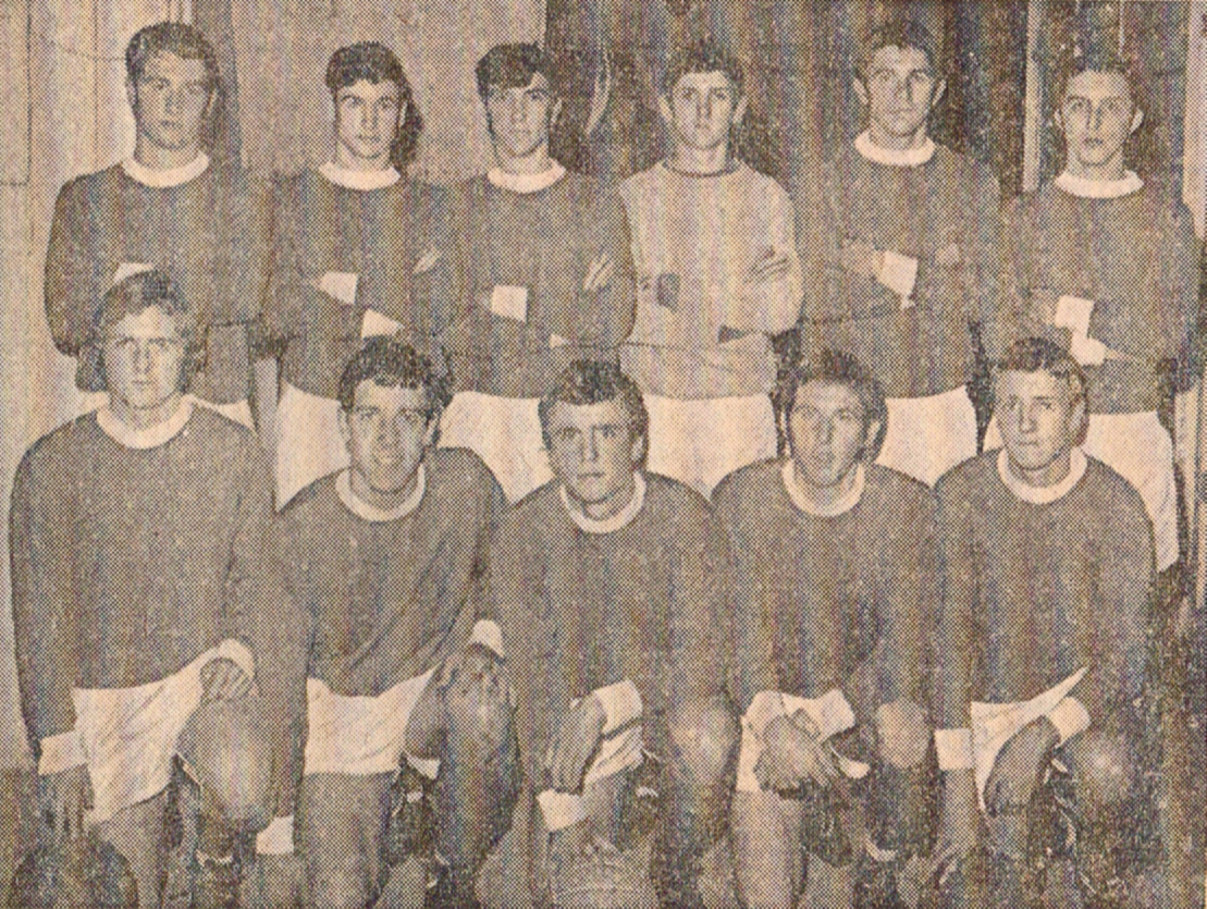 Back row:K. Allen, B. Woodfield, P. Aldworth, Fisher, D. Claypole, B. Dakin.Front row:B. Bowles, V. Stroud, P. Baggaridge, D. Dangerfield, D. Moss.