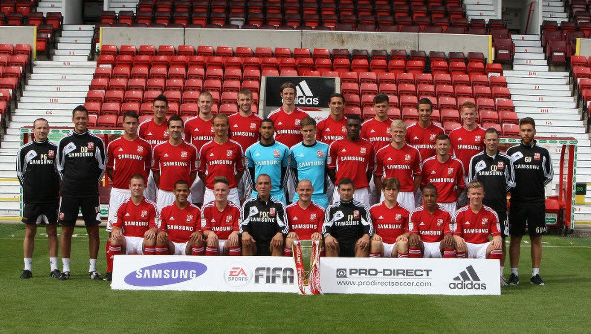 Middle row:P. Godfrey (physio), D. Doardo (goalkeeping coach), O. Risser, T. Miller, P. Benson, W. Foderingham, L. Bedwell, T. Archibald-Henville, J. McEveley, P. Caddis, C. Donatelli (fitness coach), G. Viscardi (masseur).