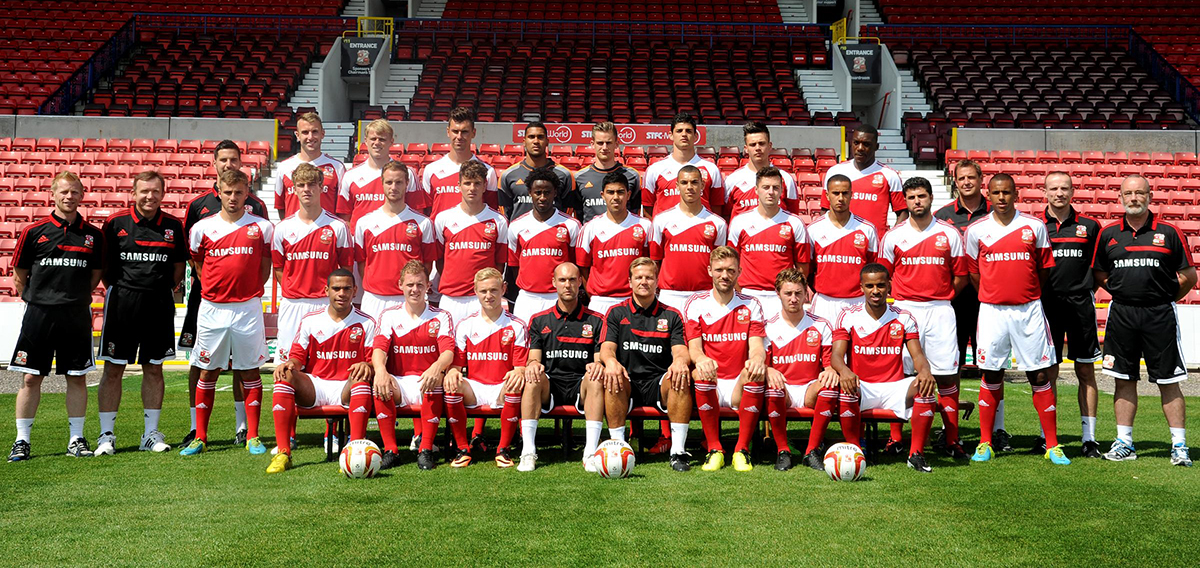 Middle row:J. Pitman (youth coach), M. Webb (masseur), M. Cooper (sports scientist), M. Francis, A. Ferguson, R. Harley, C. Waldon, TijaneR. , M. Luongo, K. Jackson, R. Mason, A. Smith, Y. Kasim, F. Digby (goalkeeping coach), N. Thompson, P. Godfrey (physio), S. Irving (masseur).