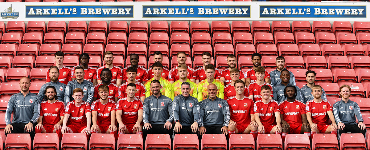 Middle row:S. Hooper (kit man), J. Isaacs (kit man), K. Tshimanga, D. Mitchell, R. Evans, J. Bycroft, D. Barden, P. Glatzel, J. McGregor, J. Headley (head of performance), J. Bradley (physio).