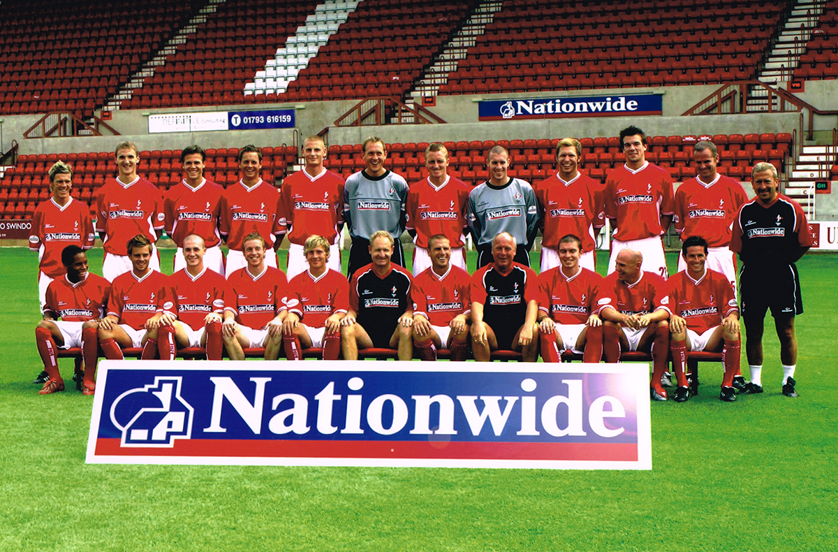 Front row:J. Stevenson, A. Young, I. Herring, S. Robinson, B. Howard, M. Crosby (asst. manager), A. Gurney, A. King (manager), G. Smith, T. Mooney, D. Duke.